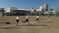 運動場で日光浴