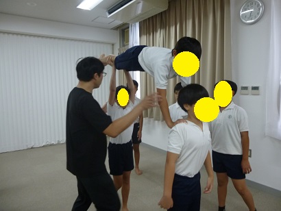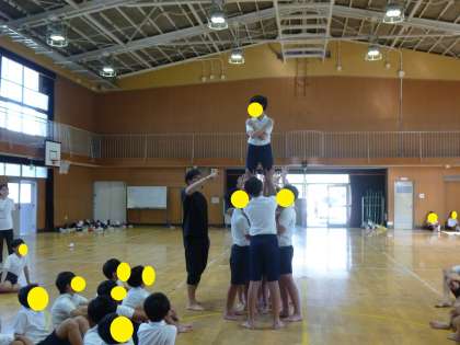 6年生の組体操の練習です。まず、9月に「組体操の指導のポイント」について教職員みんなで実技研修を実施しました実際に、子どもが実践する「技」を自らやってみることで、どうすれば「安全」で「痛く」ない組体操が実施できるのかを学びました。