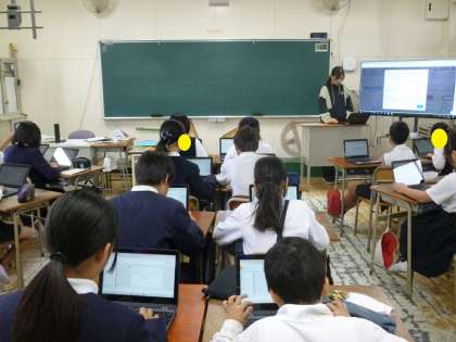1時間目、雨天のため全体練習が中止になり、各学級で児童用端末の機種変更の設定をしていました。