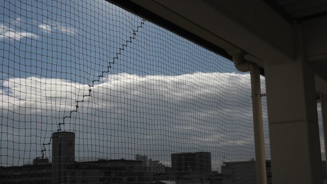 床にいつもハトの糞が落ちていて、掃除しても掃除してもまた汚される……というあの絶望的なループから解放されました。1学期は、5年生の子どもたちが掃除していたですが、1日で元通りになってしまうのでやりがいがなく、衛生的にもどうか?と思ったので管理作業員さんにお願いしていました。写真のネットのおかげでハトが入ることができず糞被害もなくなりました。