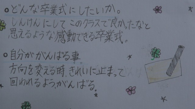 6年生の卒業式の練習が進んでいます。11日(水)に卒業生を祝う会を全校集会として実施するので、1~5年生は講堂で今日リハーサルをします。みんなの「お世話になりました」「ありがとうございました」が学校中で感じられ、どこの教室もいい雰囲気です。