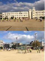 12月22日3時間め、青空のもと、3年生と4年生が、元気よく体育学習をしていま...