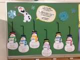 保健室に入ると、右側の壁面を利用して、とってもかわいい雪だるまが6個並んでいま...