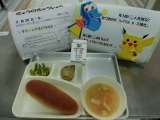 今日のメニューは「ケチャップ煮、さんどまめとコ−ンのソテ−、りんごのクラフティ...