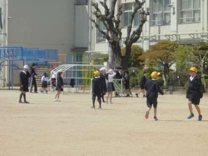 ポカポカ陽気にさそわれて、休み時間にはたくさんの子どもたちが運動場に出てきました。元気よく走り回る姿が見ていてとても気持ちがいいです。淀川小学校の子どもたちの素直で明るいようすが伝わってきますね。このあとチャイムが鳴ったら。どどどどどーーーっと一斉に教室に帰っていきました。(^^♪