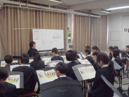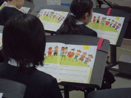 音楽室からリズミカルなピアノの音と子どもたちの元気な声が聞こえてきました。のぞいてみると、4年生の子どもたちが音楽の授業をしていました。「子どもの世界」という曲を楽しそうに歌っていました。先生が気をつけるポイントをていねいに教えてくれます。もっともっと歌うことが好きな子どもたちになってほしいですね。