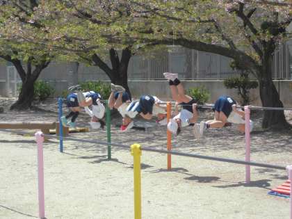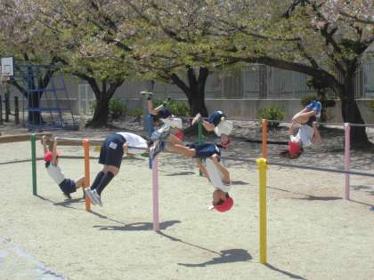 3年生の子どもたちがお互いにてつぼうの見せ合いっこ(^^)/