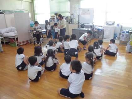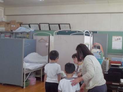 1年生の子どもたちが保健室で発育測定を受けていました。先生に一人ずつ名前を呼ばれて、身長と体重を測っていきます。これから6年間でどれだけ大きくなるのかな?楽しみですね。
