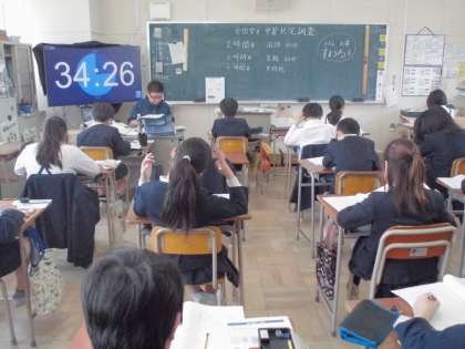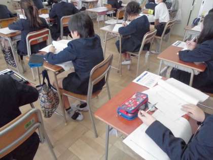 子どもたちは普段と比べて少し緊張したようすでテストに取り組んでいました。みんな真剣な表情で問題文を読んだり解答を書いたりしていました。終わったときには「つかれたー」「がんばったー」「もういややー」…、一人一人がそれぞれ思ったことを素直に声に出していました。おつかれさまでした。