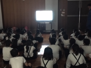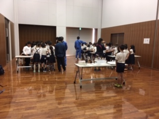 大阪市の地下には約5000kmの配水管が設置されているというお話を聞きました。続いて、部屋に入って浄水場のしくみについてDVDを見ながら学習しました。またその後には、水をきれいにする「ろ過実験」を体験しました。「すごいすごいっ!」「きれいになっていくで」・・・子どもたちは徐々にきれいになっていく水のようすを見て驚きと感嘆の声をあげていました。