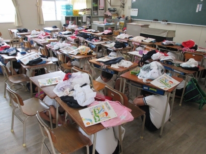 午前11時、大阪880万人訓練の一斉放送がありました。それを受け、各教室では、地震の想定で、机の下に潜り込んで避難する訓練を行いました。