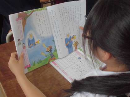 2年生が道徳の授業をしていました。まず有名な「金のおの」という読み物を読んで、きこりや神様の気持ちについてみんなで考えたり想像したりしていました、そして「正直な心ってどういうことかな?」「正直に言うことができたときの気持ちはどんな感じかな?」・・・、子どもたちは自分の生活のようすをふりかえったり自分の行動にあてはめたりしながら、自分の意見を発表していました。