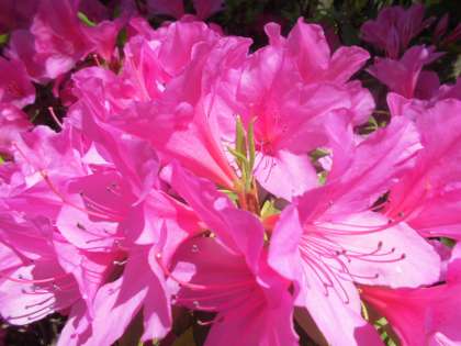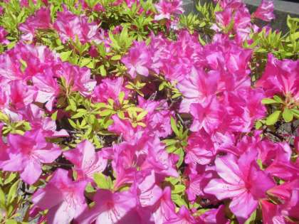 1年生の教室のろうか側につつじの垣根がつづいています。