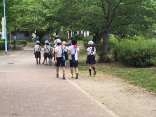 今日は1日、縦割り班で活動しています。オリエンテーリングも、1年生から