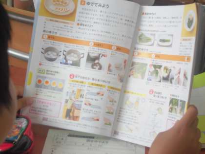 5年生が家庭科の授業でゆで卵やゆで野菜について学習していました。5年生ではおもにゆでることを中心に調理実習をします。「卵って何分くらいゆでたらいいのかな」「ぼくは半熟の方が好きや」「からが上手にむけるときとむけないときがあるのはどうして」「どんな切り方がありますか」・・・卵だけでもいろいろな意見が出ていました。実習が楽しみですね。家庭科は5年生から始まります。身につけた知識や技能を生活の中で生かしていけるといいですね。