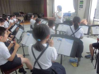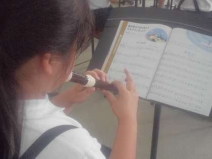 4年生の子どもたちが先生の伴奏に合わせて、リズムよくリコーダーを吹いていました。「オーラリー」という曲です。「曲の気分を感じ取って演奏しましょう」というねらいをもって練習していました。それぞれのパートに分かれて吹く部分もあり、先生の指示を聞きながら上手に合わせていました。