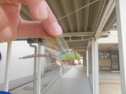 昨日のホームページで紹介したプール清掃でつかまえたヤゴがさっそくかえっていました。ギンヤンマです。子どもたちも思わず「うわぁー、おおきいなぁー!」・・・ヽ(^o^)丿