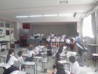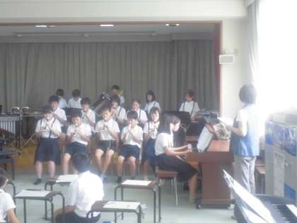 昨日に引き続いて、6年生のもう一つの学級が合奏のグループ発表を行っていました。パートの役割や楽器の特徴を生かして合奏することをめあてにしてがんばっていました。気づいたことやよかったところをプリントに書き込んで、発表の際に役立てていました。一人一人がそれぞれの楽器をていねいに演奏しているようすがとても伝わってきました。