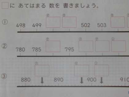 下の数の線を見て、□にあてはまる数を書きましょう。