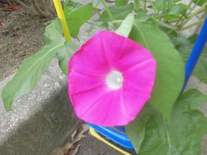 どのあさがおも葉っぱが大きく育っていますが、まだどれも咲いていなかった・・・今日、ひとつだけ いちばんのり。