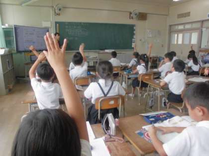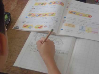 2年生が算数の授業で「50+70の計算のしかた」について考えていました。5+7は12です。それは習っているんだけどね・・・。子どもたちは10のたばで考えていました。50は10のたばが5こ、70は10のたばが7こ、だから・・・10のたばは全部で12こで答えは120だよ。そのほかにも120−30などのひき算にも取り組んでいました。