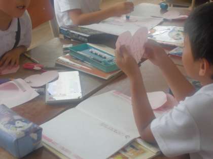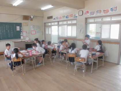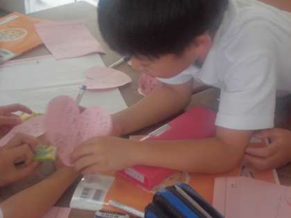 2年生が道徳の授業で「いいところ みいつけた」の学習です。グループで友だちのいいところを考え、ハートの紙に書いて渡します。グループの友だちからもらったハートの紙を見て、自分のいいところはどんなところかを考える授業です。友だちから自分のいいところを教えてもらって、ちょっと照れくさそうにしている子もいました。「自分にはいいところがいっぱいある」・・・みんな自信をもって頑張っていってほしいと思います。