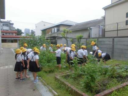 3年生の子どもたちが学習園の雑草を抜いていました。