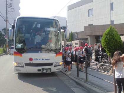 バスに荷物をつみ込み、いよいよ出発です。天気もよく、すばらしい林間学習になりそうです。友だちと協力し合いながら、たくさんの活動を通してさらにたくましくなって帰ってきてくださいね。