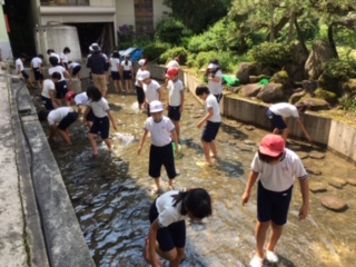 魚つかみです。みんなで協力して魚をつかんでいます。