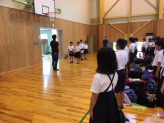 楽しかった三日間のハチ高原での林間学習も終わりが近づいてきました。閉舎式でお世話になった宿舎グリーンロッジの方に、感謝の気持ちを伝えました。その後三日目のふり返りを行いました。