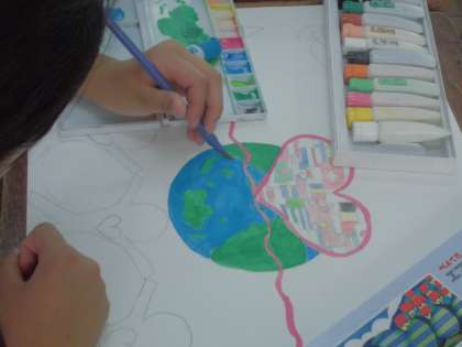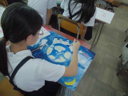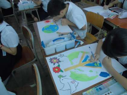 6年生が平和をテーマにポスターを描いていました。伝えたいことをどう表わしたらいいのか悩みながら絵の構図やデザインなどを考えていました。6年生の子どもたちの気持ちが世界中に届くといいですね。