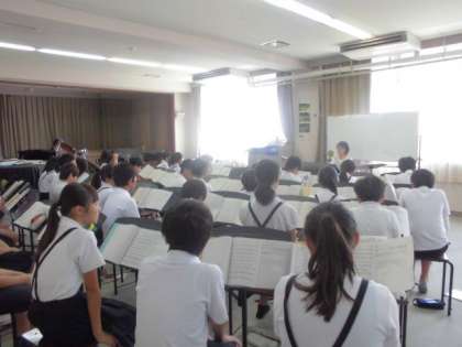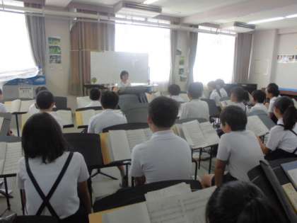 音楽室から6年生の子どもたちの歌声が聞こえてきました。先生の歌声がとても澄んでいてきれいなので子どもたちも思わず聞き入ってしまいます。子どもたちも負けないようにポイントを教えてもらいながらがんばって歌っていました。