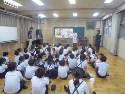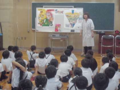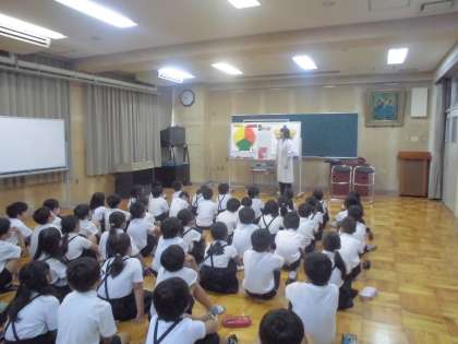3年生が本日、ライフに社会見学に出かけます。それに合わせて見学前にライフの職員の方に来ていただいて出前授業を行いました。食べ物のお話や栄養バランスのお話を聞きました。ライフの見学では買い物体験やお店の工夫、仕事の内容などについて教えていただけることになっています。しっかりと勉強してきてくださいね。