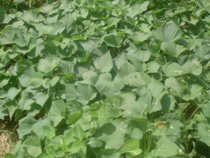5年生が育てている稲も実っています。稲穂です。なかなか市内では田んぼも少なくなってきて、子どもたちも普段の暮らしの中では目にすることが少なくなくなってきています。こういった体験は大切にしていきたいですね。2年生が育てているさつまいもの葉が大きく広がっています。きっと土の中ではすくすくと大きく育っていることと思います。収穫が楽しみですね。