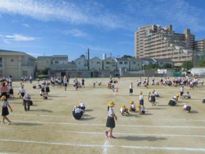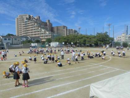 朝の児童集会の時間にみんなで運動場の石ひろいをしました。みんなでラジオ体操をしたあとに、小さな小石をたくさんひろいました。