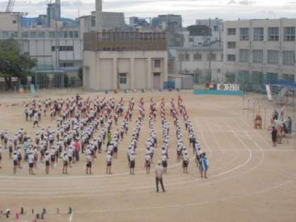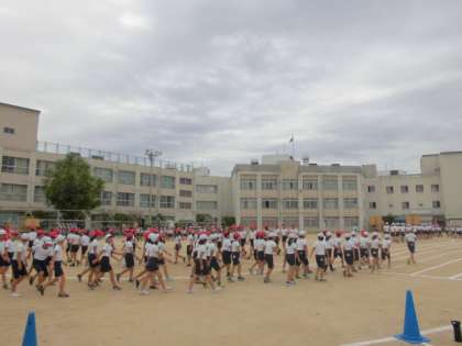 本日は1・2時間目を使って、1回目の全体練習を行いました。子どもたちは音楽に合わせて元気よく入場していました。校長先生からは「日頃の練習の成果を十分に発揮して、お家の方々や地域の方々に元気で頑張っている姿を見てもらいましょう」とお話がありました。行進の仕方や自分が並ぶ位置をみんなで確認しました。