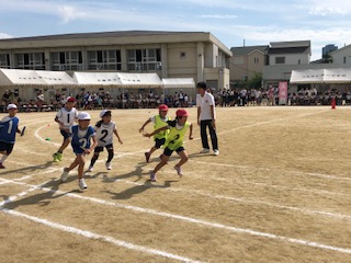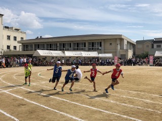 各クラスの代表がバトンをつなぎます。子どもたちの声援がすごかったです。