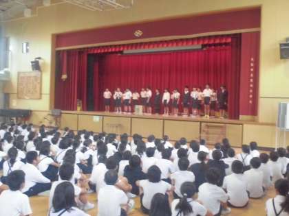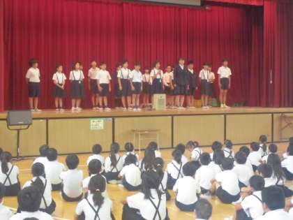今日の児童集会では後期代表委員会の紹介がありました。一人一人が自己紹介をし、がんばりたい気持ちを力強く発表していました。淀川小学校の児童代表としてしっかりと力を発揮してくれることと思います。期待しています。