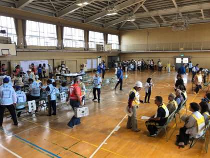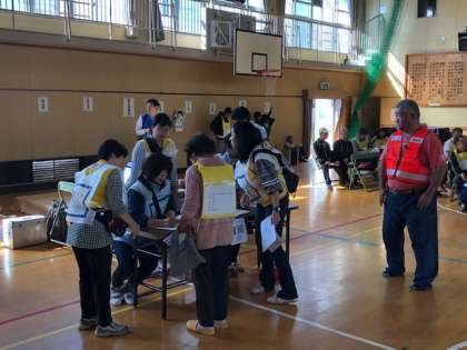 本日、淀川小学校講堂にて淀川地域防災訓練が行われました。地域実行委員会の方々、都島区役所の方々が中心となって、非常災害時に備えて各部署の動きなどについて確認しました。