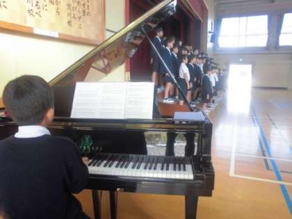6年生が音楽交流会に向けて練習にも熱が入ってきています。ひな壇に並ぶと気持ちも引き締まります。しっかりと顔をあげて真剣に歌っているようすはとても輝いて見えます。しっかりと練習の成果を発揮してほしいと思います。