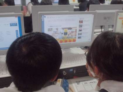 6年生がパソコン室で調べ学習をしていました。子どもたちはもうすぐ出かける修学旅行をとても楽しみにしています。そこで今日は淡路島について調べていました。「どんな名所があるのかな。」「特産品は何だろう。」「おいしいものはあるかな。」「うずしおって。」「あっそうだ、おみやげを調べてみよう。」・・・待ち遠しいな。