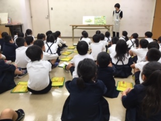 今日は朝から雨を心配しましたが、2年生が北図書館に社会見学に来ました。係の方から、図書館についての説明と読み聞かせをしていただきました。最後に図書館の中を見学しました。