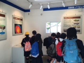 震災記念館に着きました。阪神・淡路大震災を起こした野島断層を見学し、地震について学びました。