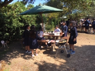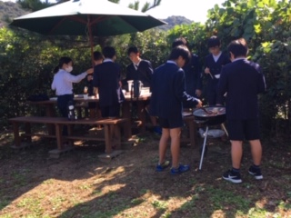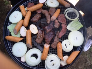 昼食のバーベキューです。美味しいお肉、ソーセージ、野菜をいただきました。