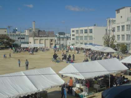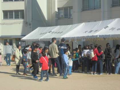 すばらしい秋晴れの中、本日11月10日(日)に「淀っ子まつり」が行われています。PTAや地域の方々がたくさんお手伝いいただいて、とても大賑わいです。子どもたちが楽しめるさまざまなゲーム、おでんやいか焼き、たこせんやフランクフルトなどのお店、本格的な石焼き芋もありました。ぜんざいやもちつき体験も大盛況です。フットサルコーナーでは子どもたちがボールを追いかけてハッスルしていました。淀川小学校の子どもたちにもたくさんの笑顔があふれています。みんなとても楽しんでいます。子どもたちの健全な育成のために、また地域の活性化のために、本当にみなさん計画、前日準備、早朝よりありがとうございます。そしてご苦労さまです。厚く感謝申し上げます。