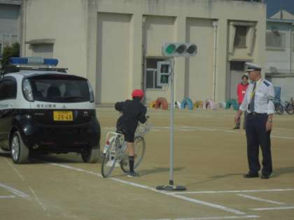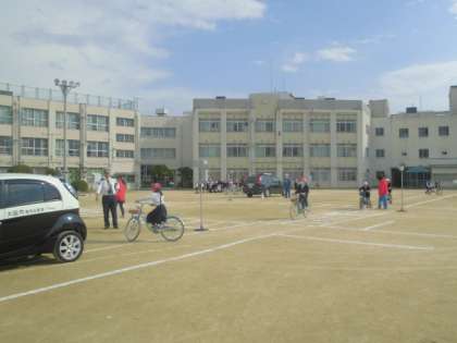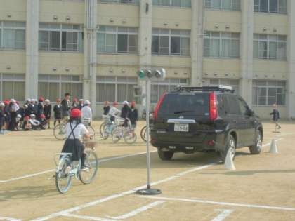 今日は都島警察署、区役所の方々に来ていただいて「交通安全指導」を行いました。1・2年生は歩行中心に、3〜6年生は自転車の乗り方について指導してもらいました。交通事故に遭わないようにルールをしっかりと守って、常に安全に気をつけなければいけません。実技指導や映像による確認などを通して学習しました。またご家庭においても交通安全についてご指導いただきますようお願いいたします。