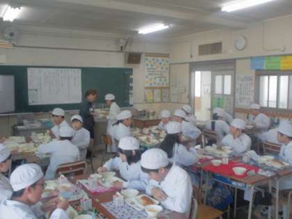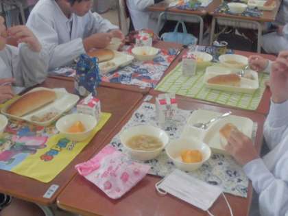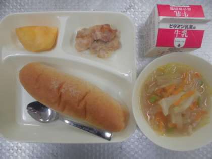 今日の給食のメニューは、鶏肉のガーリックマヨネーズ焼き、スープ、かき、牛乳、パン、でした。鶏肉のガーリックマヨネーズ焼きはにんにくの香りとマヨネーズの風味がほどよく効いていて、鶏肉も身は厚く皮がパリッと香ばしく焼かれていておいしかったです。スープはチキンスープをベースに塩こしょうで味がととのえられていて、野菜がたくさん入っていてヘルシーな感じでした。かきは富有柿で自然な甘さが際立っていました。旬が感じられました。