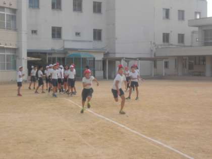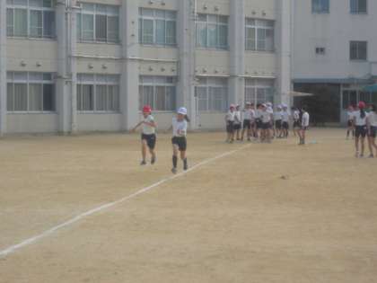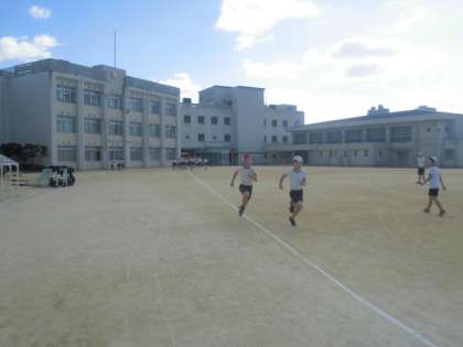 6年生が50m走の記録をとっていました。一学期にはかった時から伸びているかな。子どもたちは0.1秒でも記録を縮めようと真剣に走っていました。まわりの友だちも大きな声で応援していました。