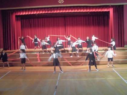 2年生が講堂で学習発表会の練習です。2年生はみんなが知っている「スイミー」を発表します。音楽に合わせてからだをゆらす子どもたちがとてもかわいらしいです。