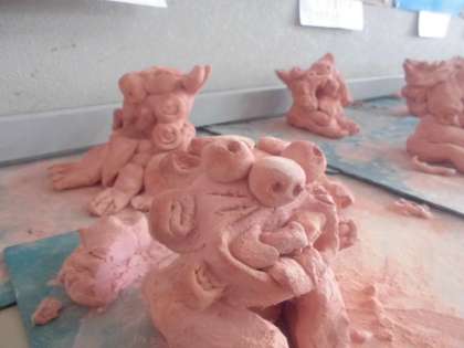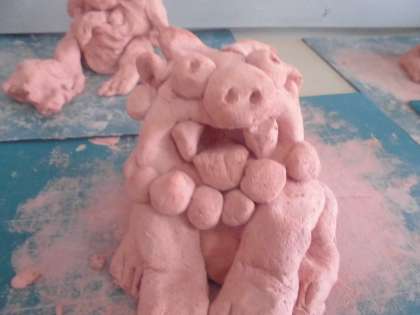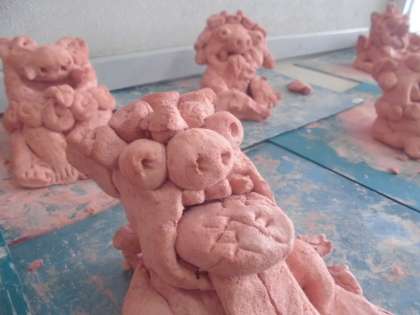 4年生が図画工作科の授業で「シーサー」を作っていました。シーサーは沖縄県に古くから伝わる守り神です。沖縄県の多くの家屋に設置されています。粘土をこねながら、一人一人が思い思いのシーサーを作っていました。